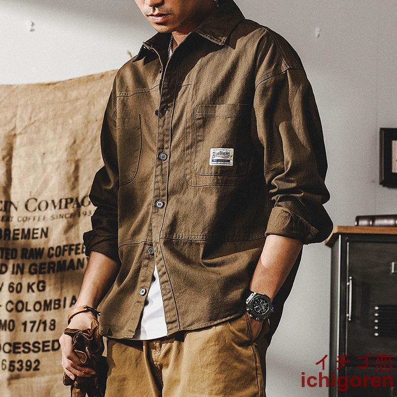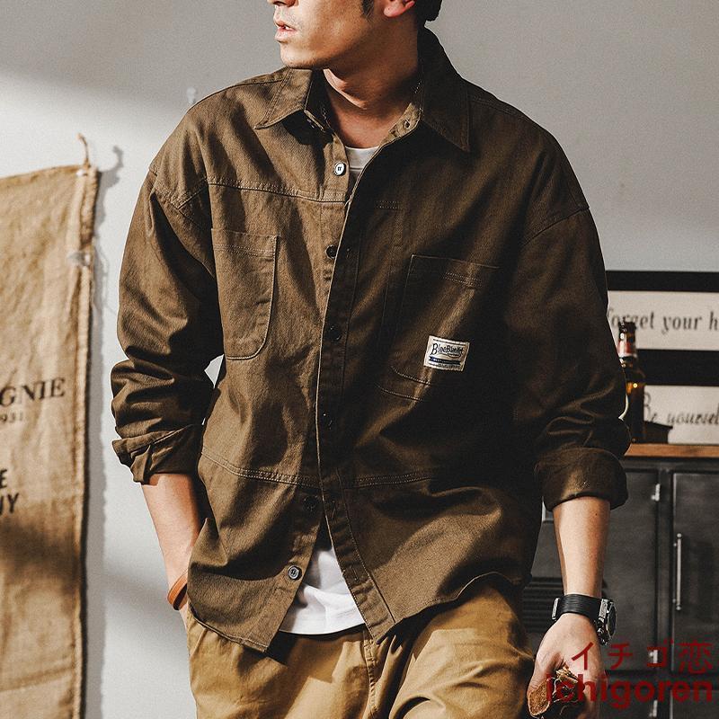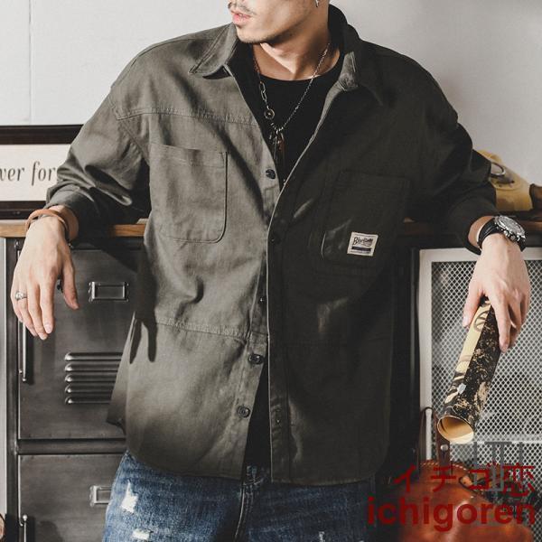 ミリタリージャケット メンズ ワークシャツ 長袖 白シャツ アメカジ ライトジャケット カジュアル ストリート オシャレ コットン メンズファッション