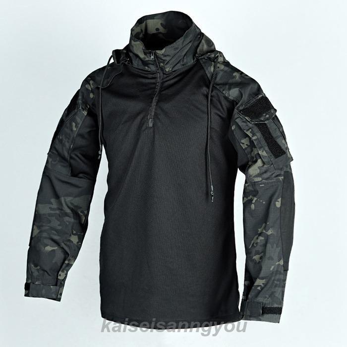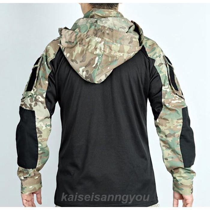 迷彩服 メンズ タクティカルシャツ ミリタリー シャツ ハーフジップ パーカー ハイネックtシャツ サバイバルゲーム フード脱着 速乾 サバゲーシャツ スポーツ サバゲー装備 腕ポケット付きズ